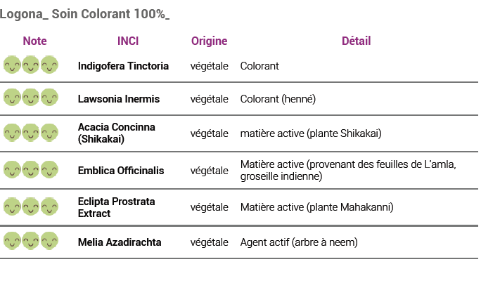 5 composants = 5 extraits naturel de plantes. Rien de plus. Aucun colorant de synthèse, aucun conservateur (inutile avec une formulation en poudre, sans eau) aucune substance problématique. Mais au contraire un ensemble de plantes choisies pour leurs effets colorants et leurs propriétés de soin.